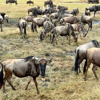 One of our crossings was perfectly setup to be an action packed day. When we arrived at a crossing spot (1.5 hour drive from our lodge), the herd of Gnu was clearly anxious and looking for a path down to the river. As we were checking out the herd with binoculars, Ilene spotted 3 crocodiles in the water… oh yea, game on! A couple of the Gnu went down to the water with 20 or 30 following them and I’m thinking “OK! Here we go!”. Then… they turned around and ran back up the bluff. The whole herd moved away from the river and we waited another 30 minutes until I decide I need to use a bush toilet. Keep in mind, you can’t get out of the vehicle (more on that later) so the guide has to drive somewhere safe and private enough. Just as we are starting the truck, 10 or 15 Gnu come running back and plunge into the water to cross and the whole herd (maybe 500) follow - less than 100 feet from the crocodiles! Apparently, not only is it high season for safaris , but it’s also high season for the crocodiles because they didn’t even move! Damn wildlife! Spoiling the show. Our guide said, they likely ate yesterday and weren't hungry... ugh.